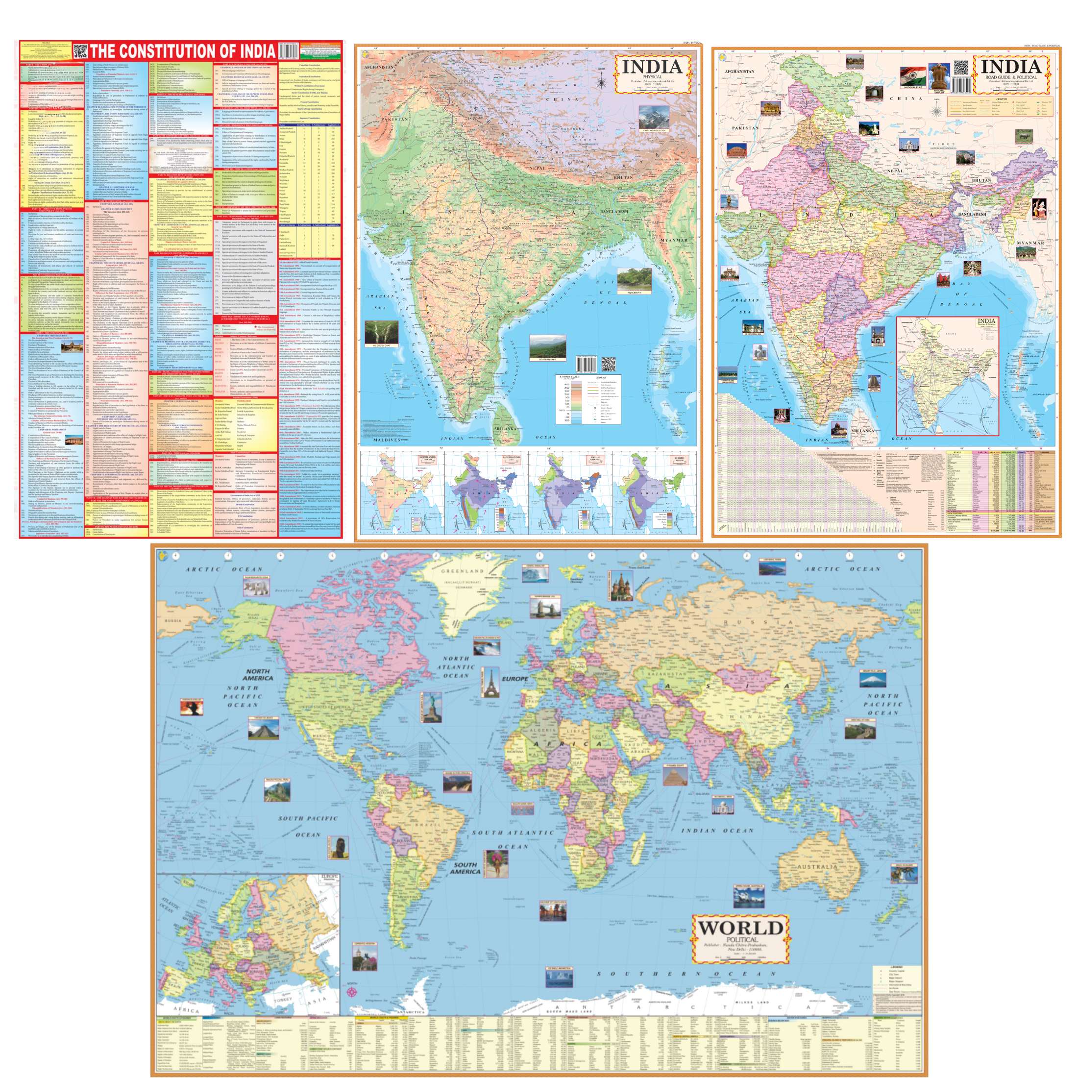 - Includes Indian Constitution Chart, India Political & Physical Maps, World Political Map